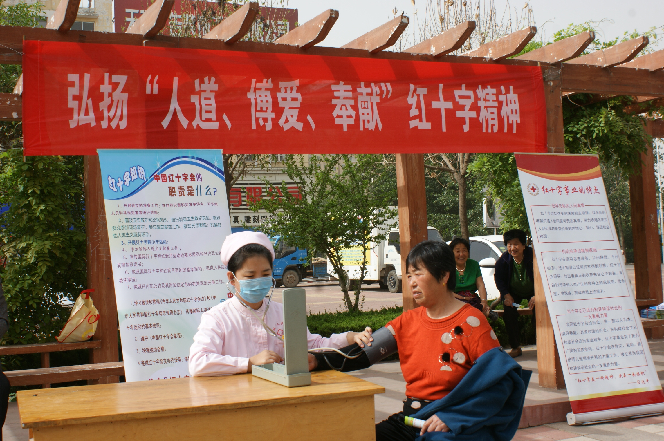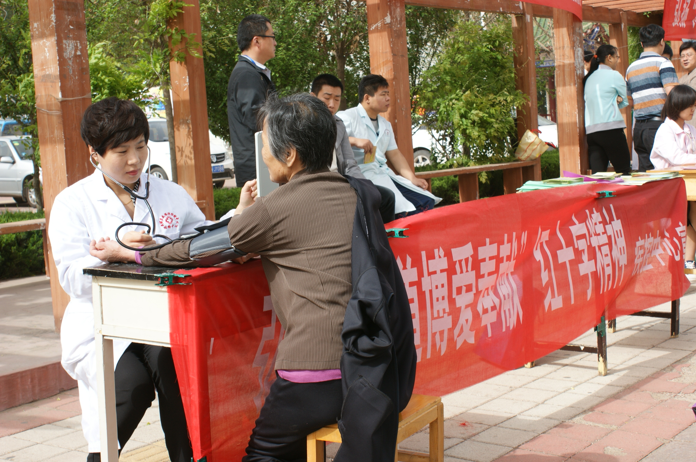 武城县医院、县中医院、县疾控中心、县妇幼保健站、县红十字口腔医院等会员单位通过传单、标语、展板等形式广泛宣传红十字知识、艾滋病知识、造血干细胞捐献及无偿献血知识。活动现场,医务人员走上街头为群众量血压、提供健康咨询和查体问诊服务。