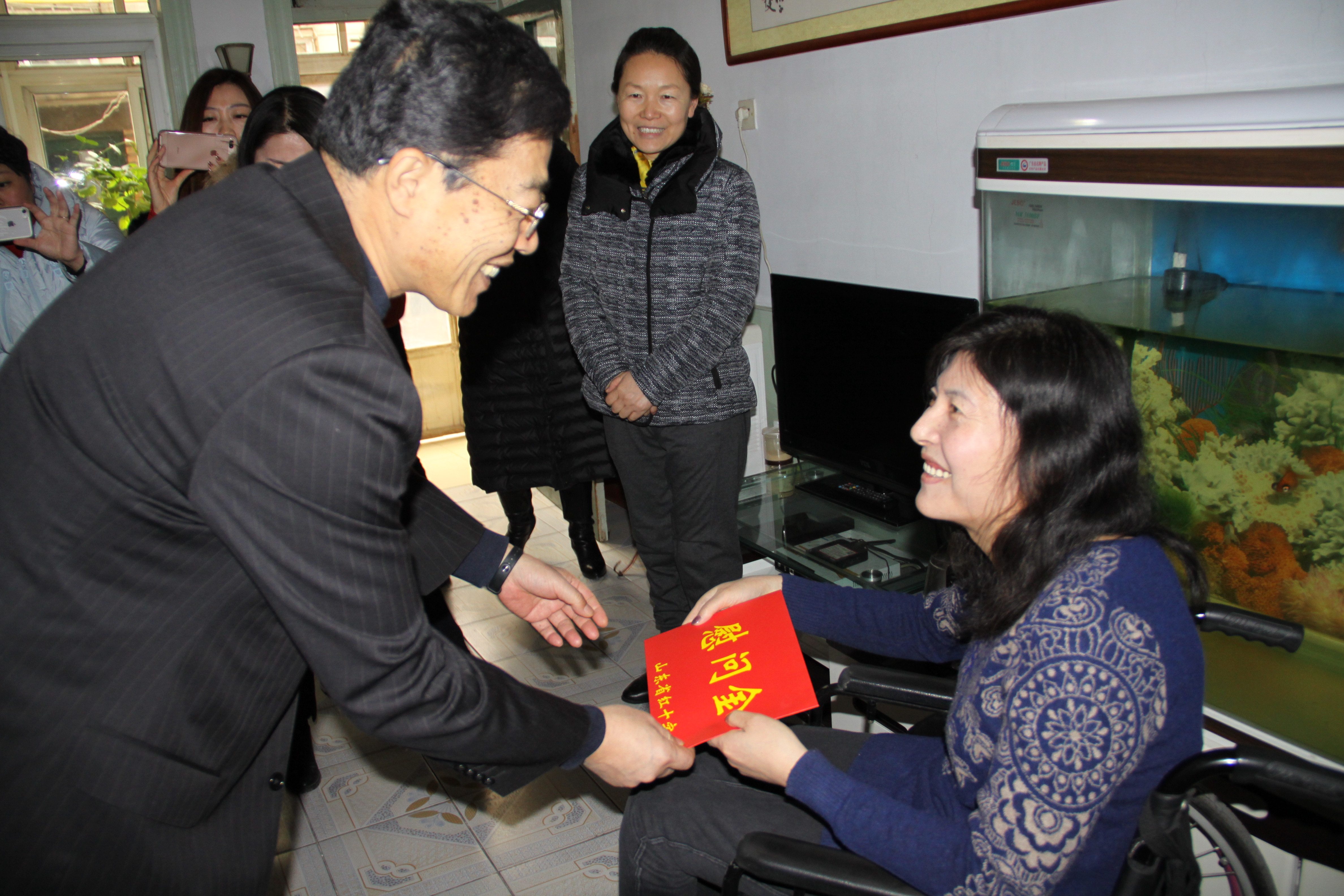 刘卫堂一行先后来到德城区困难群众李智慧、陈桂凤家中,仔细询问了他们的身体状况,详细了解家庭生活情况,向他们送上慰问金、慰问品和新年祝福。